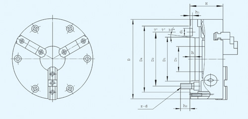 2、再將卡盤用前穿螺釘與A2型法蘭盤連接。