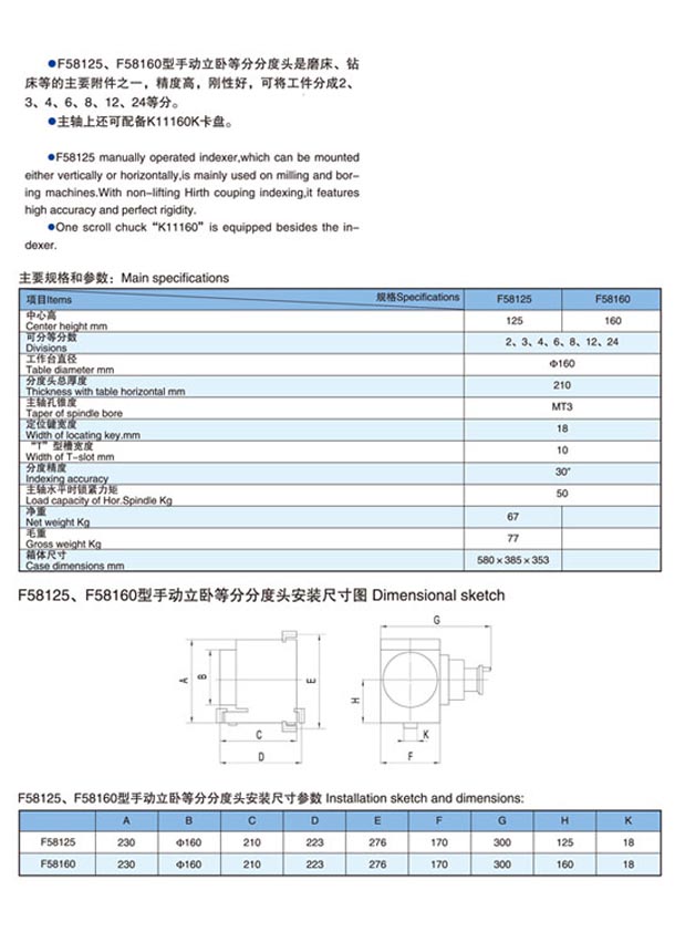 F58125型立臥等分分度頭