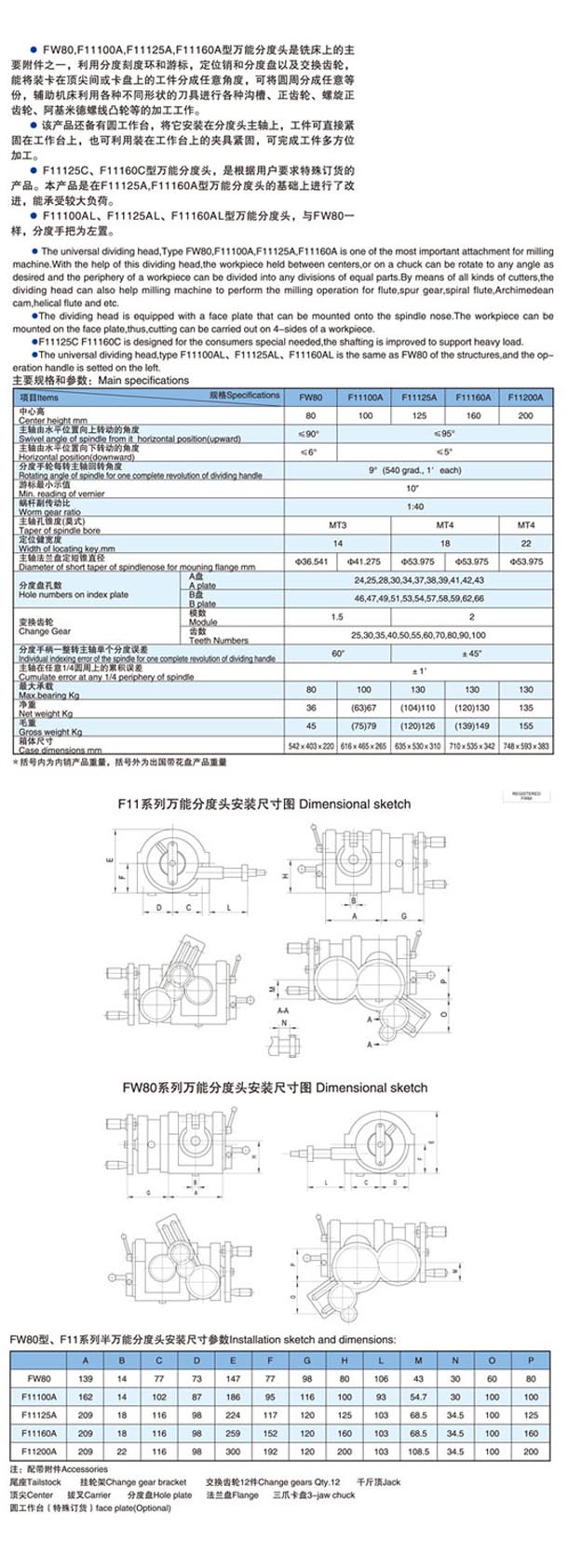 FW80型F11系列萬(wàn)能分度頭