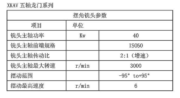 XKAV五軸龍門系列是我公司在XKA21、XKA24、XKA27、XKA28系列數(shù)控龍門鏜銑床基礎(chǔ)上配置帶C軸回轉(zhuǎn)的大功率滑枕銑頭和擺角銑頭,實(shí)現(xiàn)五軸五聯(lián)動(dòng)加工功能。